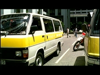 バス会社の車の集団という設定で、同じカラーリングの様々なワンボックス車が並ぶ中、1台だけ旧いキャラバンでしたので、何かありそうなのは見当つきました。