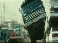 いすゞニューパワー(ダンプトラック)、S120系クラウン4ドアHTの破壊シーン。