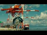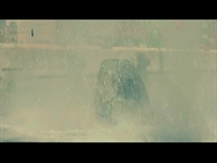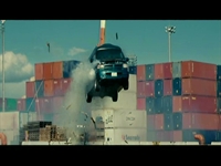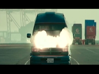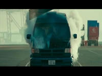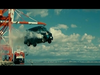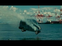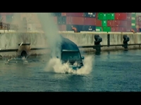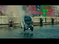 鷹山が放ったショットガンの弾丸が命中、車は、パレットを台にして、海に向かってダイブ、海中に沈んでしまう。
