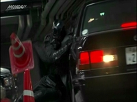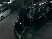 覆面パトカーという設定にぴったりの、黒塗りの150クラウンセダンが破壊されます。