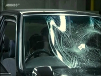 サイドガラスの破壊、バックで壁に激突、フロントガラスの破壊、フロントを柱に激突、と目一杯の活躍となっています。