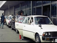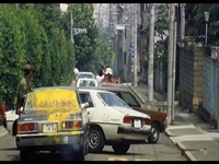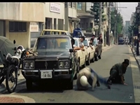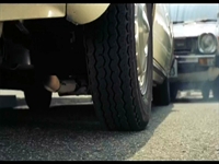 S100系クラウン4ドアセダン、120系ギャランΣ2台、A10系バイオレット・バン、初代ランサー・バンの破壊シーン。